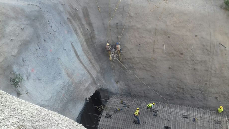 Refuerzo de portal de salida con anclas postensadas. Túnel Manzanillo, Manzanillo, Colima.
